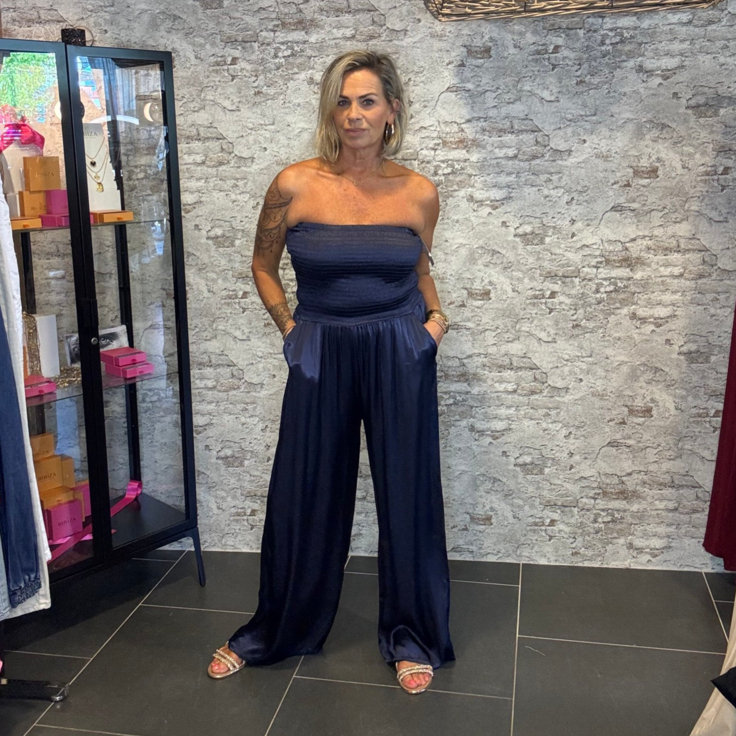 Deze stijlvolle jumpsuit is dé perfecte mix van comfort en elegantie. Gemaakt van 100% viscose met een subtiele glans die prachtig het licht vangt. De soepele stof valt mooi om het lichaam en voelt heerlijk zacht aan op de huid.