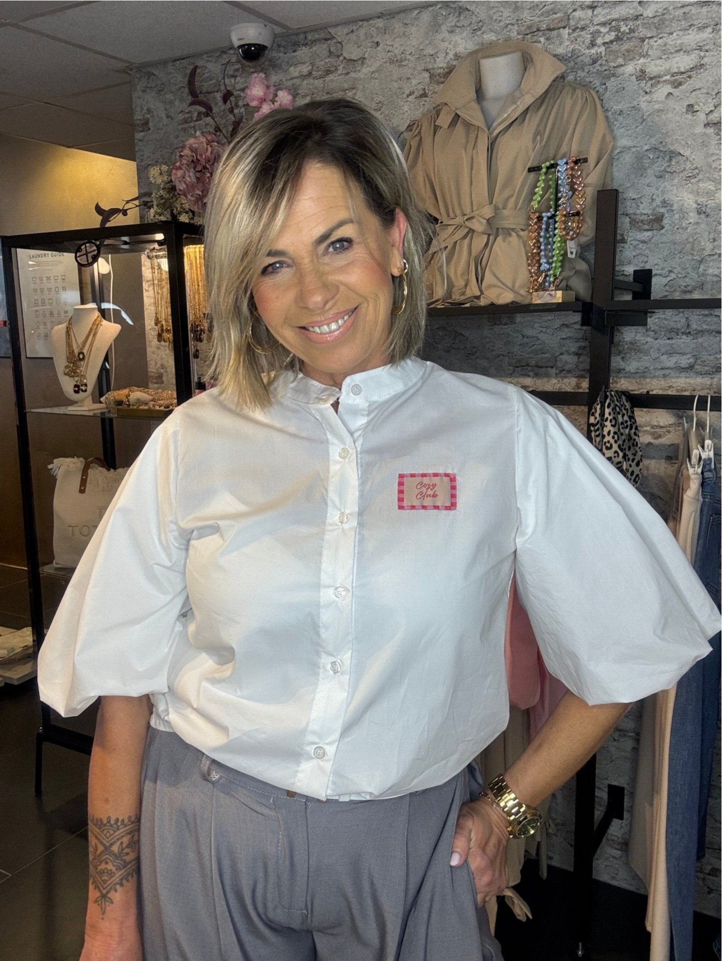 Deze leuke blouse is een echte must-have! De speelse pofmouwen geven de blouse een trendy en vrouwelijke uitstraling, perfect om je outfit net dat beetje extra te geven.