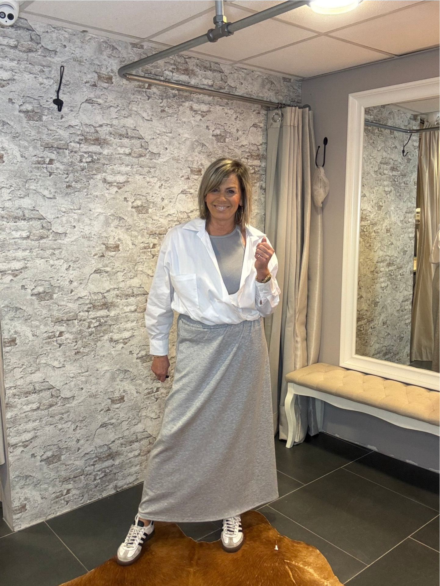 Deze lange rok is de perfecte combinatie van comfort en stijl. Gemaakt van een mooie, zachte joggingstof waardoor hij heerlijk draagt en tegelijkertijd een verzorgde uitstraling heeft. De elastische boord zorgt voor een fijne pasvorm en extra draagcomfort.