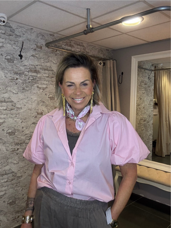 Stijlvolle blouse met elegante pofmouwen voor een vrouwelijke en trendy look. De blouse is voorzien van een knoopsluiting en een klassieke kraag, waardoor hij zowel chic als casual te combineren is. Perfect voor elke gelegenheid.